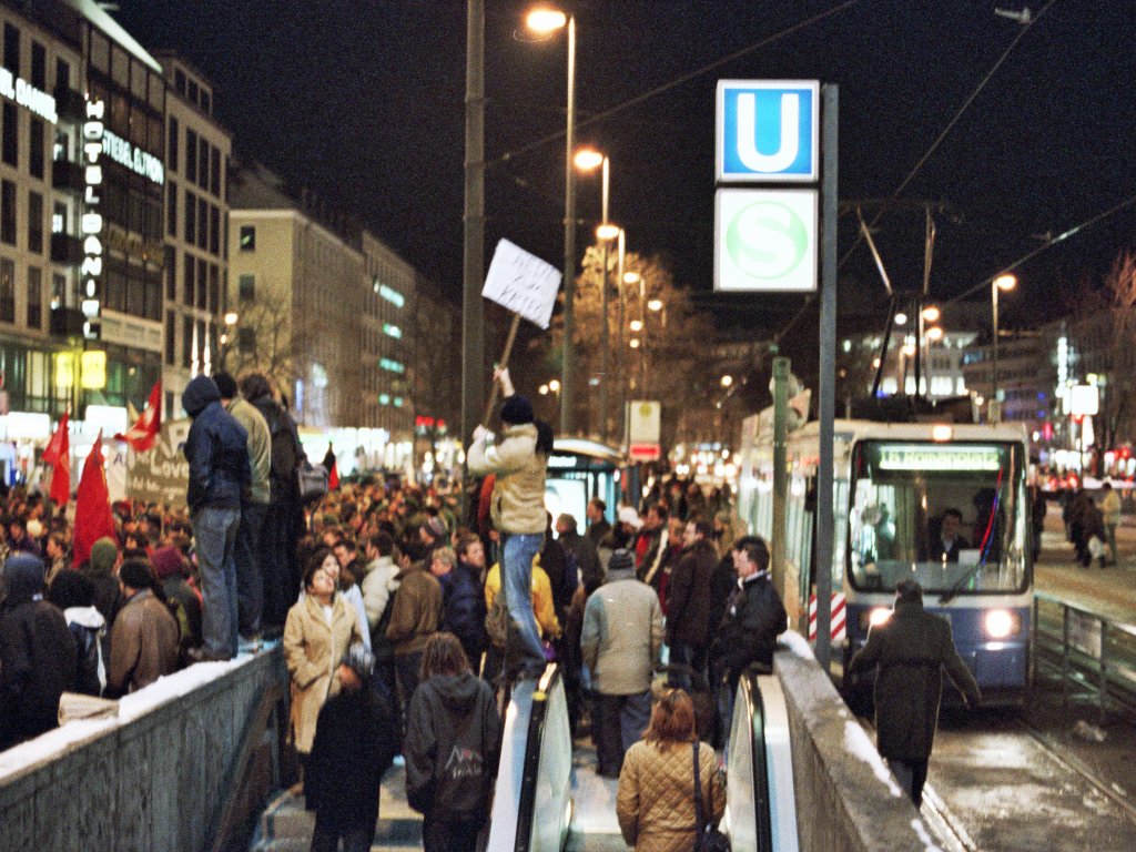 Jubeldemo "Für Kapitalismus und Krieg" (7. Februar 2003 München)